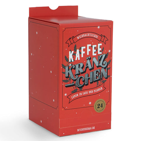 - 24 KAFFEEÜBERRASCHUNGEN: Der MyCoffeebag Adventskalender enthält 12 unterschiedliche Kaffeesorten und bereitet damit Kaffeeliebhabern eine genussvolle Reise durch erlesene Kaffeeanbaugebiete unserer Welt.